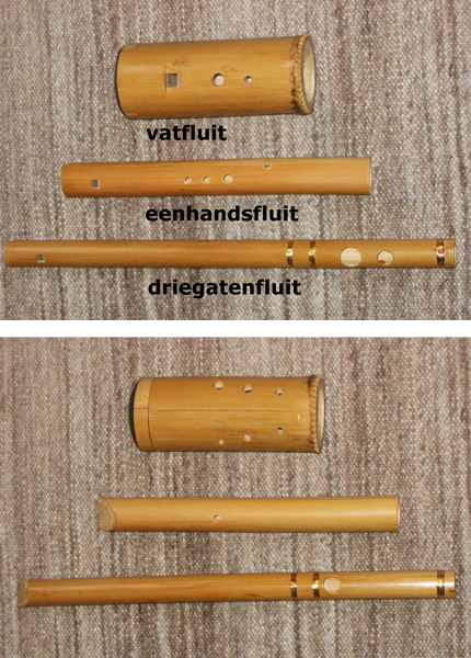 Het maken van die laatste vier veronderstelt al flink wat ervaring van de fluitenbouwer. De meeste fluiten hebben een bereik van een octaaf plus een terts of kwart. De laagste toon van de diverse bamboefluiten is:
